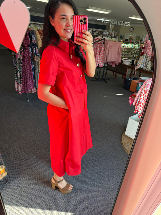 Red Dress with Gold Buttons