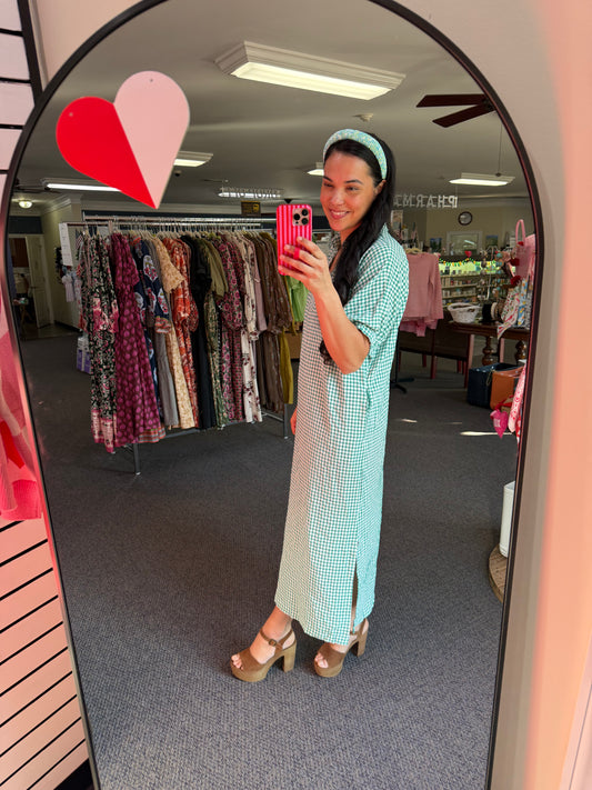 Green Gingham Midi Dress