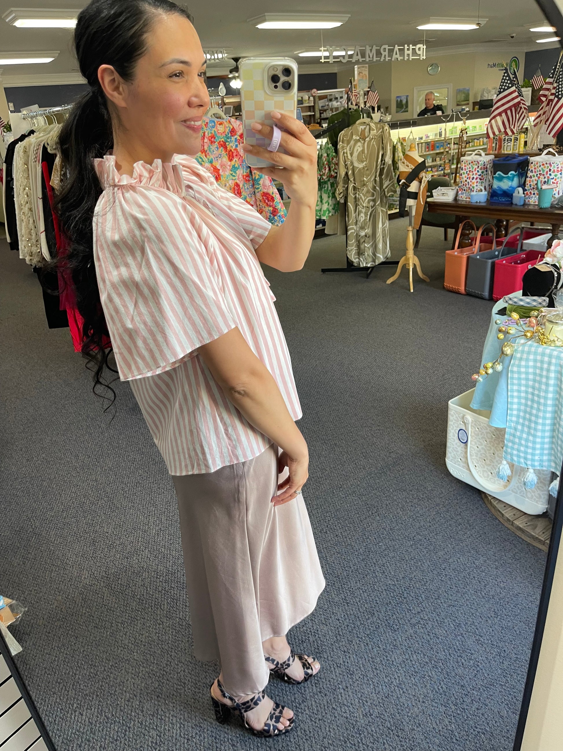 Pink/White Striped Top